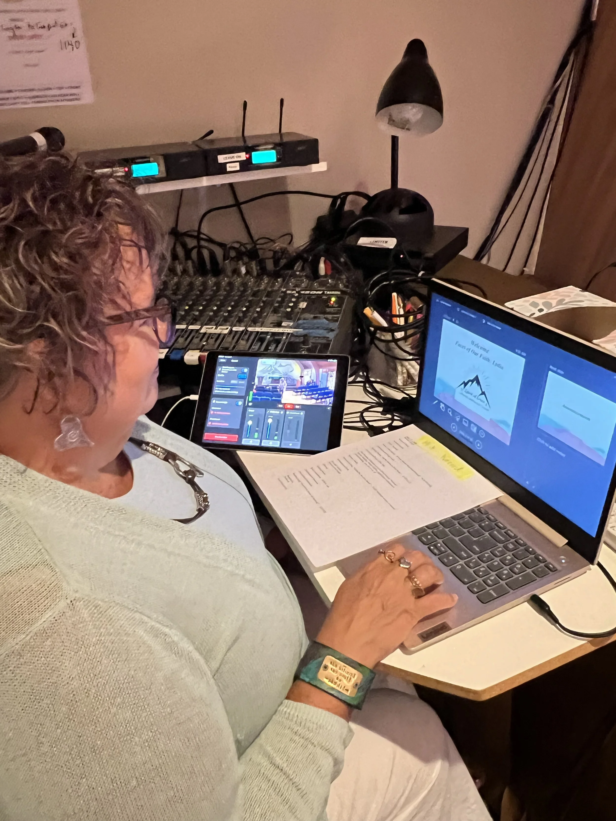 An incredibly important job for our worshiping community! This role involves running the powerpoint slides for worship, managing the sound board, and recording the service to be uploaded to YouTube afterwards. This job requires a small amount of technological competency, and a brief 30-minute training with Pastor Miranda or Linda Boris.